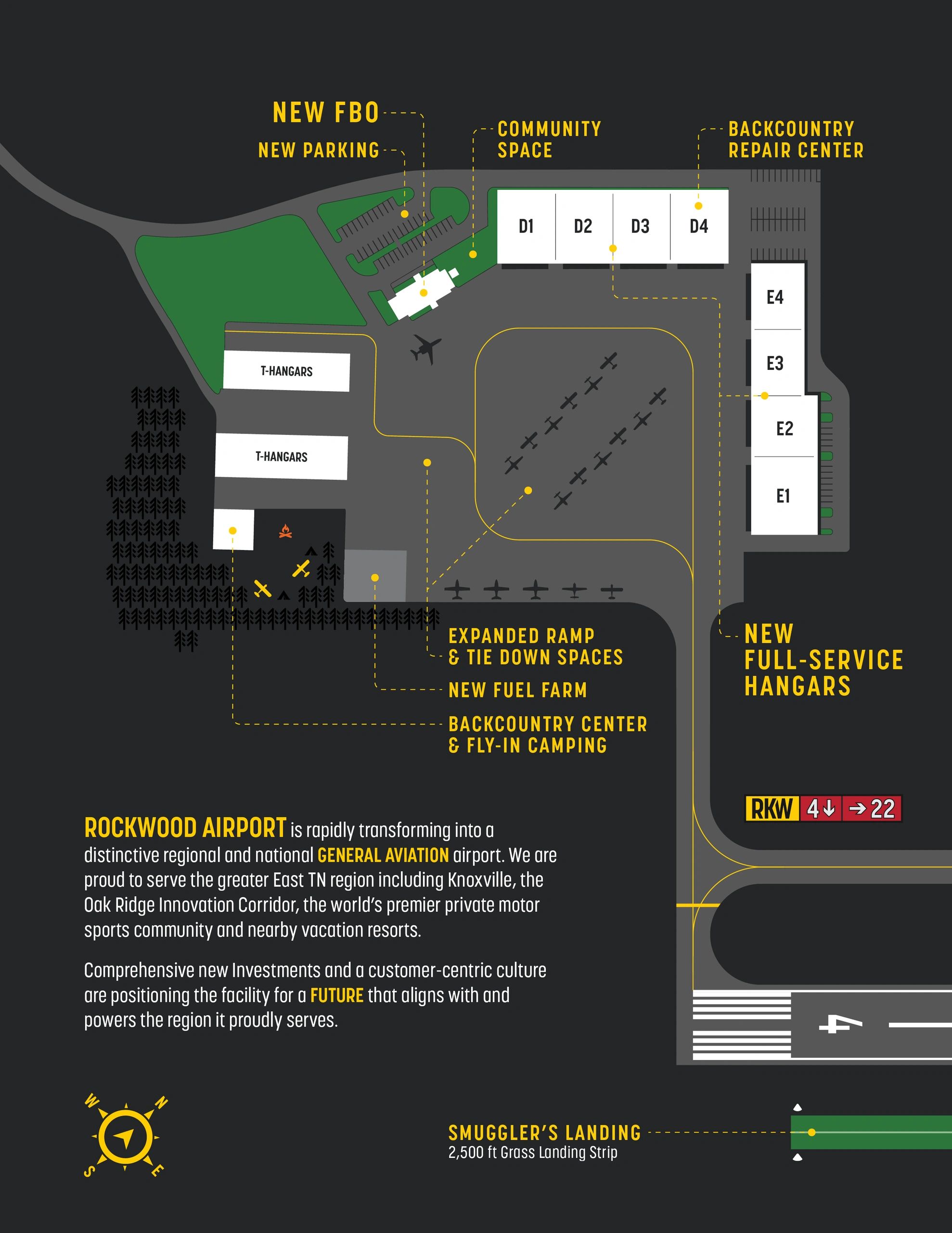 75,000 square feet of new hangar space is currently under construction, featuring 70x20 doors, digital 24 hour security and ceiling heaters for year-round comfort